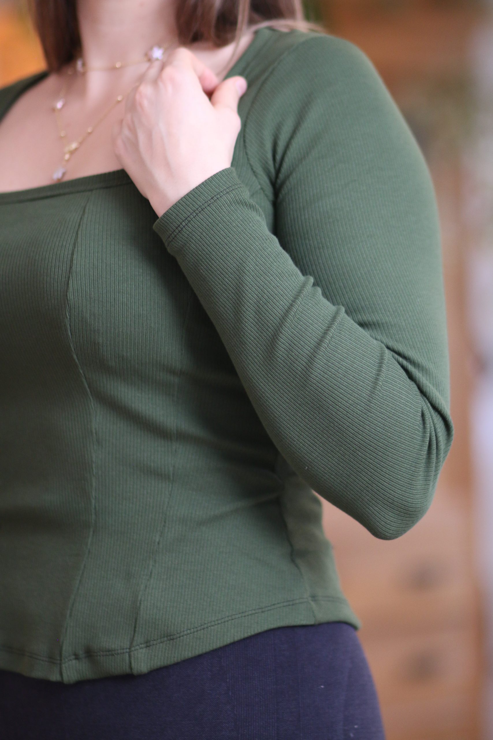 Dieses Shirt-Schnittmuster ist für alle gedacht, die körpernahe Oberteile lieben und sich darin wirklich wohlfühlen möchten. Der Schnitt ist so konstruiert, dass er die Figur formt, ohne einzuengen, nicht durch starke Dehnung oder Kompression, sondern durch eine durchdachte, formgebende Schnittführung.
